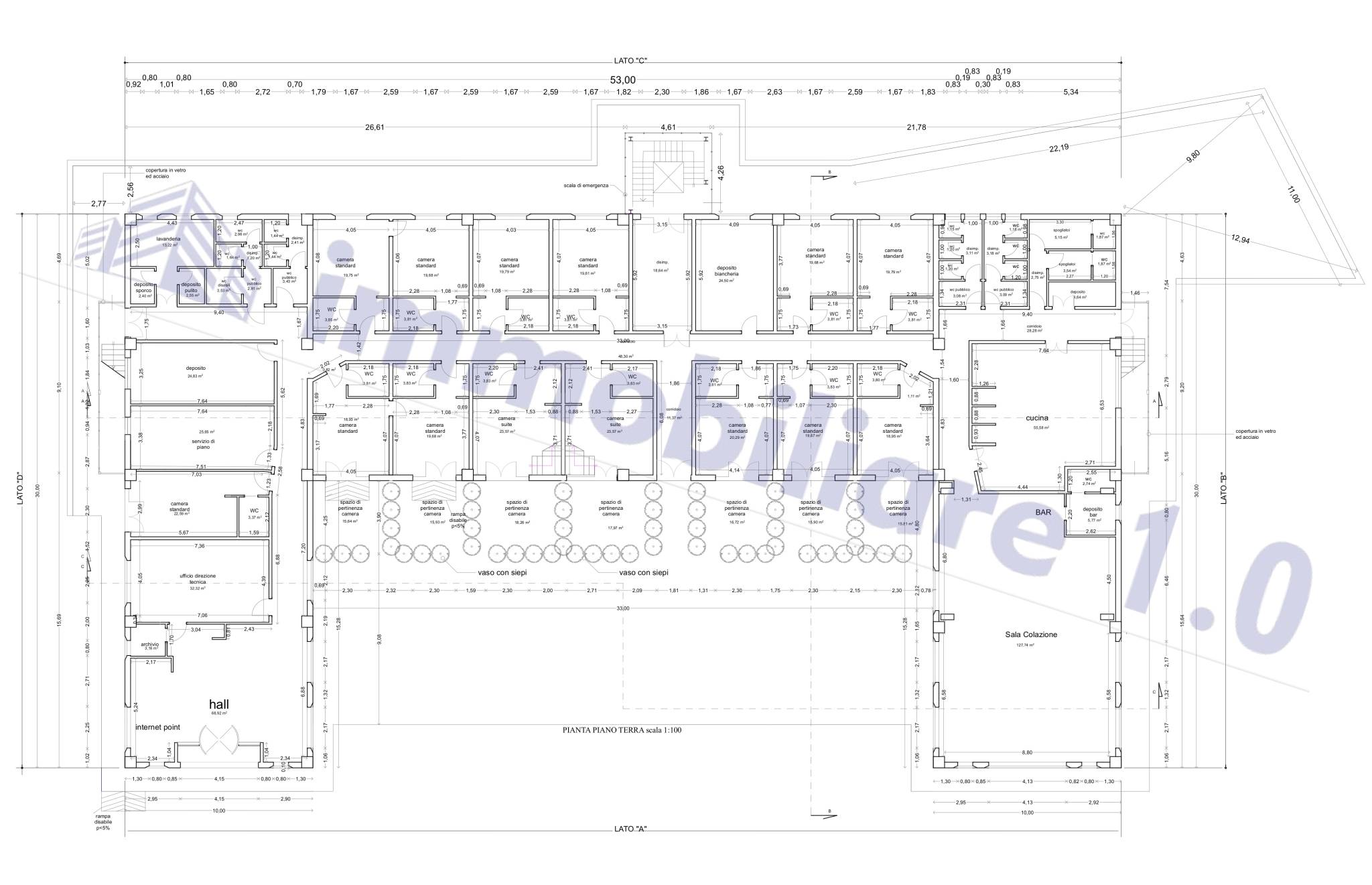 • Spazi comuni: salone colazioni/ristorante, cucina professionale, ingresso con reception e ufficio direzionale
